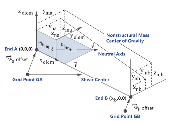 要素がCBARである場合は、Match with Shear CenterとMatch with Centroidのどちらのオプションでも、オフセットは(0,0,0)となります。
