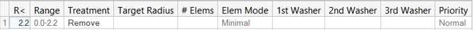- テーブルで半径の範囲および追加オプションを指定します。要素の行を追加または削除するには、