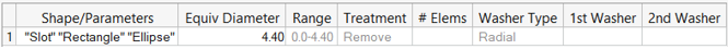 2021.1以前のパラメータファイルの円形穴テーブル内で、スロットも扱われていました。スロットを個別に定義できるようになったことで、新バージョンのスロットテーブルに読み込まれた過去のファイルは、円形の穴データに基づいて自動的にデータが入力されます。このデータを利用することも、完全に削除して新しいデータを追加することも可能です。新しいデータは、以下のルールに基づいて入力されます。穴テーブルで特定の半径の穴が削除された場合、スロットの長さが1.4×ターゲット要素サイズよりも短く、幅が95%の最小要素サイズよりも小さい限り、同じ半径を持つスロットが削除されます。