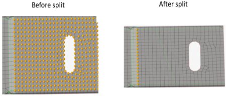 - トポロジーが2つのポイント間のサーフェス上で変化し、そのサーフェスに関連付けられた節点が元に移動されます。エッジに関連付けられた節点は、現在の位置のままです。
