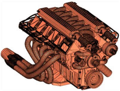 シュリンクラップのひとつの例として、モデルの.stl表現を三角形/四角形メッシュに変換する必要がある際、shrink wrapを使うことで迅速かつ効率的に行うことができます。また、衝突解析においては、高度に詳細化されたパワートレインモデルは必要ありません。このようなケースでshrink wrapメッシュを使って詳細パワートレインモデルを簡易化したモデルを素早く生成し、衝突シミュレーション用のモデルでこのシュリンクラップ表現を使って衝突解析を行います。