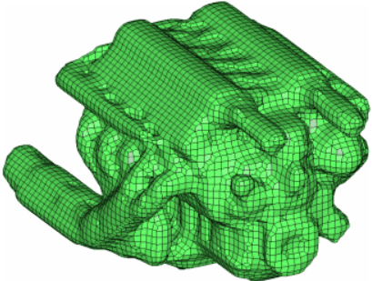 シュリンクラップメッシングは、例えば衝突解析の際のパワートレイン部品などのように高精度なモデルは必要ない場合に、複雑なモデルを単純化したメッシュを作成するための手法です。