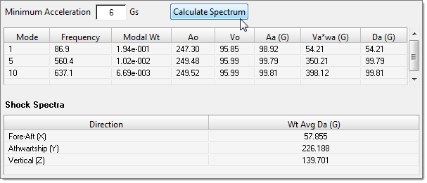 衝撃スペクトラム曲線が計算され、モード表と重みつきの平均Da値が入力されます。