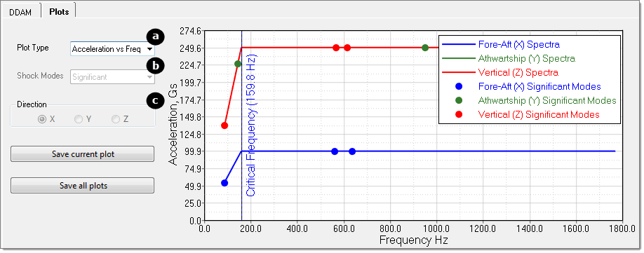 衝撃スペクトラム曲線のプロットを表示します。