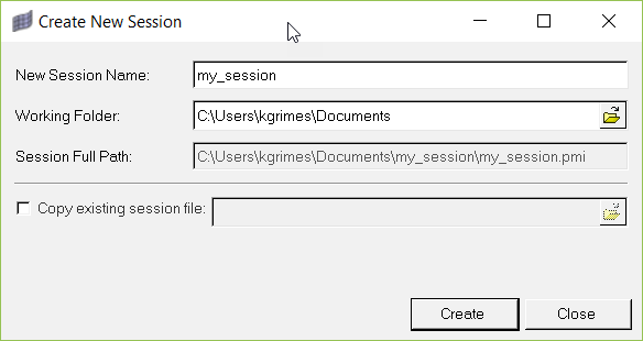 Create New Sessionダイアログが開きます。図 2.