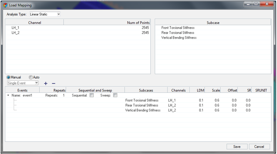 このセクションでは、さまざまなソース(.csv、DAC、RPC/RSPなど)から荷重-時間履歴データを選択およびインポートして、疲労カードを作成する方法を学習します。インポートプロセス後に、シミュレーションで適用される荷重シーケンスを定義できます。