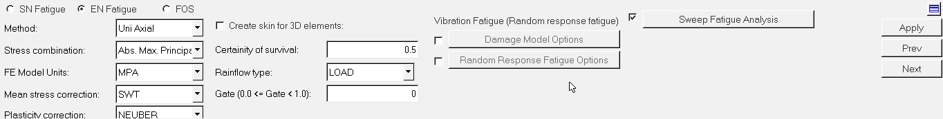 Sweep Fatigue Analysis 選択または非選択にした後、ボタンをクリック - NF_OPTION: 選択または非選択