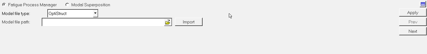 Process ManagerブラウザはFatigue Subcaseステップに進み、下図のようなパネルが表示されます。
