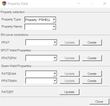- PFAT、PFATSPW、FATSEAM、PFATSMWの横にあるCreateボタンをクリックして、セットアップする疲労問題のタイプに応じて、それぞれのソルバーカードを作成します。