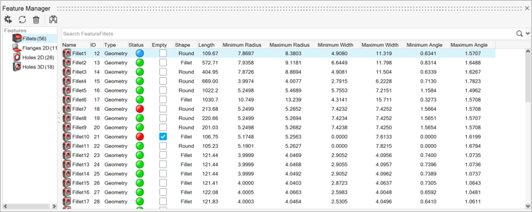 注: BatchMesher内で特定されたフィーチャーは、出力.hmファイルに保存されます。各パートの下にフィーチャーが整理されます。これらのフィーチャーは、Feature Managerからアクセスできます。