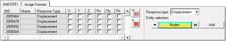 Define Responses, Select Nodal PSD Responseタスクで、出力される応答ポイントとDOFを定義します。