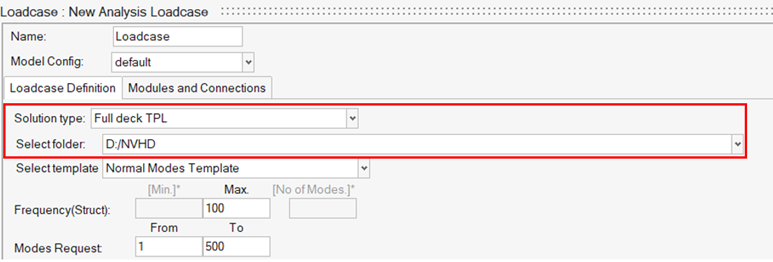 Analysis Managerでは、作成されたテンプレートファイルは、荷重ケースとして選択され、ノーマルモード解析のためのソルバーデックがエクスポートされます。