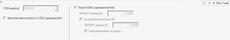 制約事項: このタスクは、Export CMS superelement fileチェックボックスが選択されたときのみ有効です。