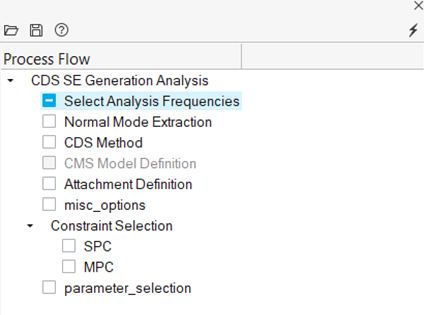 CMS SE Generationプロセステンプレートは、有限要素ベースモデルからのCMS SuperElement (SE)モーダルモデルの作成を補助します。