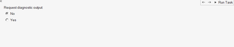 Diagnostic Output Request, Select Diagnostic Output Options タスクで、分析用の出力を作成するかどうかの設定を行います。