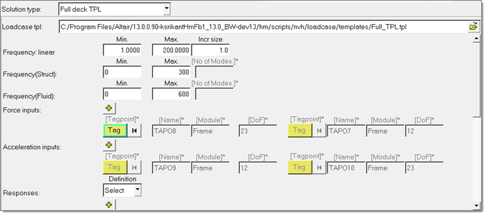 - 単位荷重FRFプロセスマネージャー全体のすべてのパラメータを含むファイルにアクセスするには、Full deck TPLを選択します。Analysis Managerでは、作成されたテンプレートファイルは、Solution type Full deck TPLの荷重ケースとして選択され、unit FRFのためのソルバーデックがエクスポートされます。
