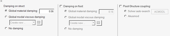 MISC Optionsタスクは、構造減衰と流体-構造練成オプションの指定を補助します。