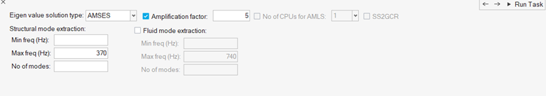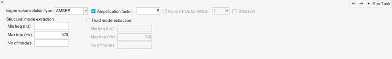 Normal Mode Extraction タスクにおいて、前のステップで指定された最大周波数を基に自動的に周波数が入力されます。