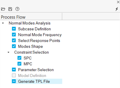 ノーマルモード解析プロセステンプレートが読み込まれ、Process Flow ブラウザ内で開かれます。