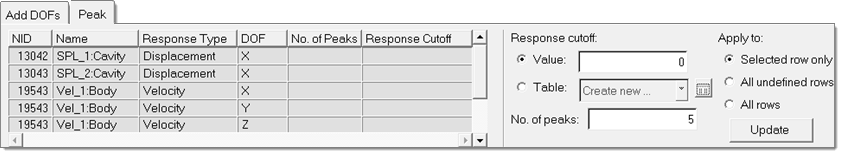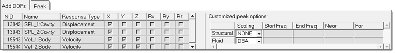 Select Diagnostic Output Request, Automated Peak Frequency Filteringタスクでは、選択された応答ピーク周波数のための構造および音響応答に適したオプションの選択が可能です。