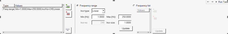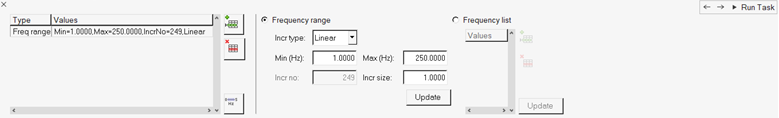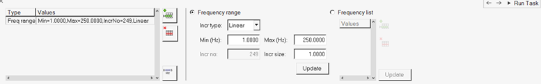 Select Analysis Frequenciesタスクでは、応答結果が必要な周波数を指定します。
