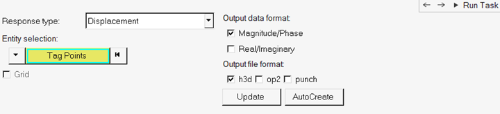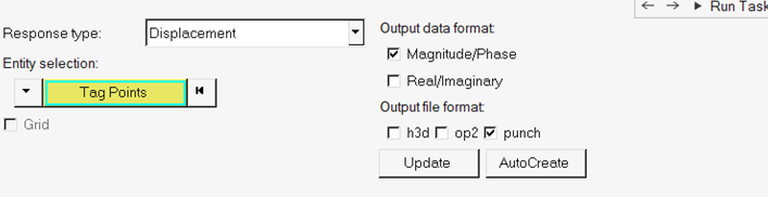 Define Input Points, Create Subcasesタスクでは、入力点間の出力伝達関数を選択します。
