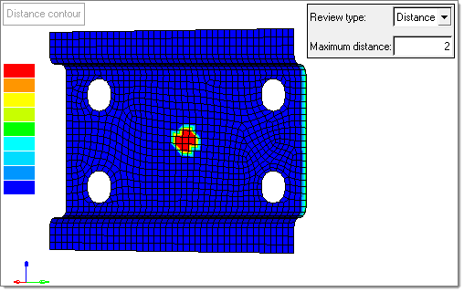 Distance sourceエンティティからのtargetエンティティの距離を表示するコンタープロットを作成する場合、実行するステップ。 制約事項: CAD-CAD比較では利用できません。- Review typeには、Distanceを選択します。