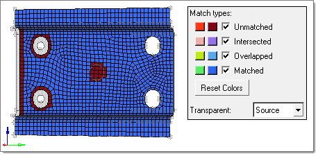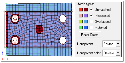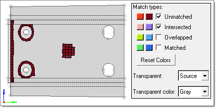 - Source/target match typesで、色見本をクリックし、新しい色をボックスから選択して、ソース(左)とターゲット(右)の両方のエンティティの各マッチタイプの表示色を制御します。グラフィックス領域内にどちらのマッチタイプを表示するかを決定するには、表示させたいマッチタイプ横のチェックボックスを選択します。エンティティが2つのマッチタイプに属する場合、"worse"タイプが優先されます。
