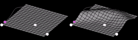 メッシュのある領域を押し出し/引張ることにより形状を変更し、メッシュ上に窪みや突起を作ることができます。