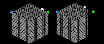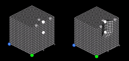 図 6では、立方体がパス(白い円)に沿って節点リスト(灰色の円)で成形されています。