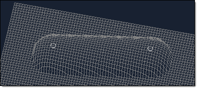 図 4で、coneツールがオフセット付きで節点リストに適用されています。円錐の先端は、節点リストに沿って移動されるため、成形されるメッシュに沿って節点リストが選択された場合、モーフィングは行われません。この例に示すとおり、メッシュサーフェスを円すいツールで押し出すには、オフセットを使用します。