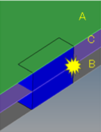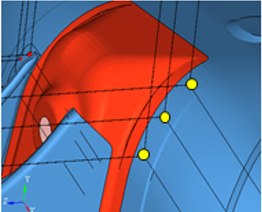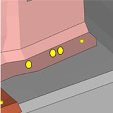 層数がしきい値を上回っているスポット溶接が参考用として特定されます。スポットガンを使用するためには切り込みを入れる必要があります。図 8.