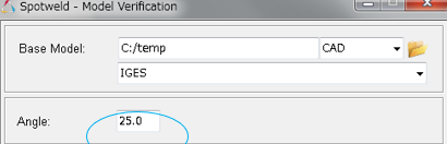 - スポット位置と溶接プレート間で考慮される最大ギャップ。この値は、モデルから離れすぎている一部のスポット溶接を除外するために追加されます。