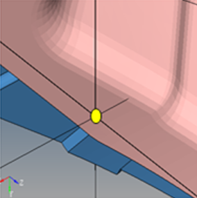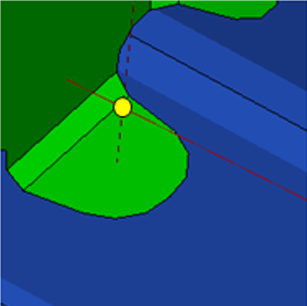 最も近いフィーチャーからのスポット溶接位置がfillet-connelem-tol距離を下回っている場合は、ここでラインが特定されます。図 22.