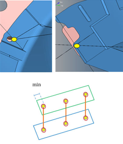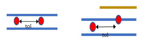- 2つのスポット溶接間の距離がこのトレランス以下であれば、重複としてレポートされます。距離は、法線方向に投影させた後に計算されます。