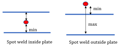 - スポット位置と溶接プレート間の最小ギャップ。
