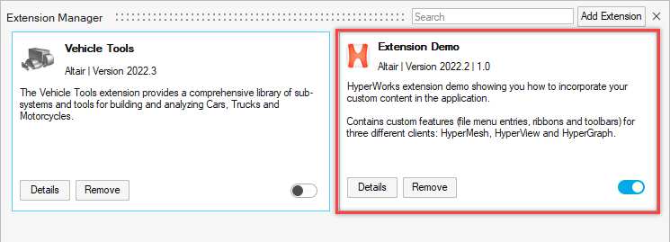 load/unload/remove extensions. The Extensions Manager, accessed from