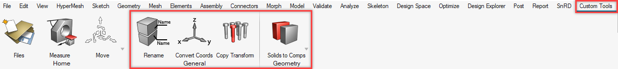 Extensions can be used to load new ribbons, toolbars, メニューバー options, and file menu options. The following images show the loaded Extension Demo extension and the loaded ribbon, toolbar, メニューバー options, and file menu options.
