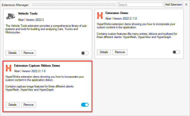 <root> <actionlist> <action tag="HMX_Parts" text="Parts" image="ribbonPartsStrip-64.png" command="tcl: ::hm::context::listentityreview::PostEE Part"/> <action tag="HMX_PartsAssems" text="Part Assems" image="ribbonAssembliesStrip-64.png" command="tcl: ::hm::context::listentityreview::PostEE PartAssembly"/> ... </actionlist> <page tag="HMX_Assembly" text="Assembly"> ... <group tag="HMX_Parts_G" text="Parts"> ... <actiongroup tag="HMX_Parts_AG" text="Parts" tooltip=""> <secondaryribbon tag="HMX_Parts_SR" text="Parts" image="ribbonPartsStrip-80.png"> <spriteaction actiontag="HMX_Parts"/> <spriteaction actiontag="HMX_PartAssems"/> </secondaryribbon> </actiongroup> ... </group> ... </page> </root>