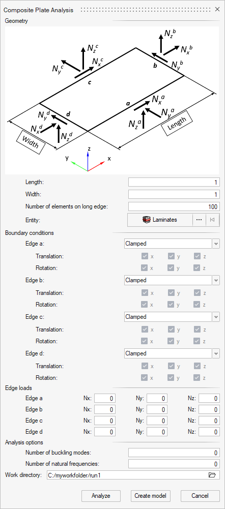 - 単一のダイアログから、パラメトリックな寸法、指定された積層材、エッジ荷重、および境界条件を持つ平らな複合プレートを作成し、解析することができるようになりました。このツールはOptiStructソルバーインターフェースで利用でき、解析を実行するにはOptiStructのインストールが必要です。結果は解析後に自動的に読み込まれます。