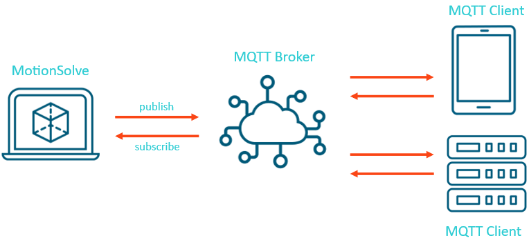 - MotionSolveは現在、msolve APIを通じてMQTTプロトコルをサポートしています。MQTTはMessage Queuing Telemetry Transportの略で、IoT向けに開発されたOASIS標準のメッセージングプロトコルです。これは、リモートデバイスが最小限のコードフットプリントとネットワーク帯域幅で通信できるようにする、軽量のパブリッシュ/サブスクライブメッセージングトランスポートとして設計されています。MQTTは、自動車、製造、電気通信、石油・ガスなど、さまざまな業界で広く採用されています。msolveのMQTTサポートは、ブローカーを介してMotionSolveモデルと他の仮想または物理デバイス間の双方向メッセージングを容易にします。この機能により、複数の機器に信号を簡単にブロードキャストすることができ、IoTアプリケーションにとって価値ある機能となっています。
