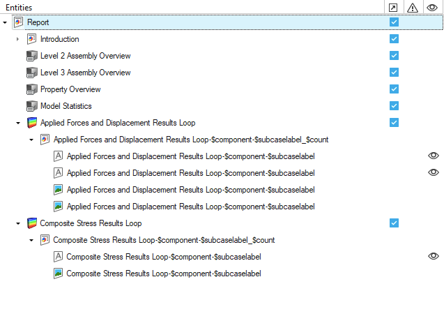 スライドレイアウトが、レポートツリーのComposite Stress Results Loopの下に追加されます。スライドレイアウトには、モジュールのタイトル、1つの画像および1つのキャプションが含まれます。