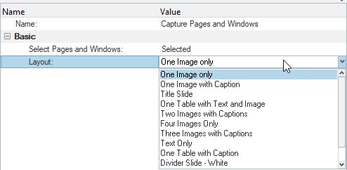 ReportまたはChapterレベルで右クリックし、 を選択します。- 以下は、Capture Pages and Windowsモジュールに関連したプロパティです。