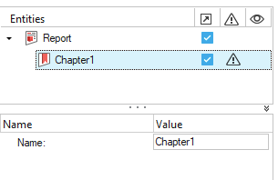 2. チャプターのNameは、関連付けされたプロパティです。この名称は変更することが可能で、Reportツリーでもそれが更新されます。