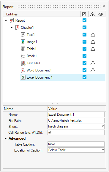 を選択します。 - 以下は、Excel Documentエンティティに関連したプロパティです。