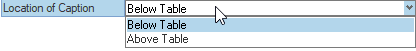 リストからキャプションの位置を選択します。これらは、Microsoft Word内の標準位置です。テーブルキャプションの位置は以下が可能です: