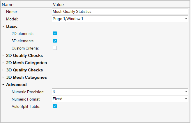 - Mesh Quality Statisticsモジュールの名前を指定します。