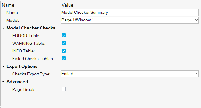 Model Checker Summaryモジュールは、失敗したチェックのテーブルとともに、3つの基本的なテーブルを作成します。