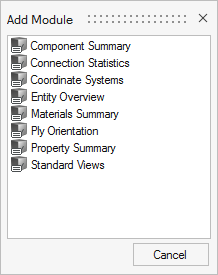 モデル情報グループには、コンポーネントの概要、結合数、材料の概要、プロパティの概要など、モデルの内容の情報に関連するモジュールが含まれています。
