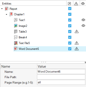 - Wordドキュメントアイテムの名前プロパティを変更します。注: Wordファイルを選択すると、Wordエンティティ名が、選択されたファイル名と置き換えられます。